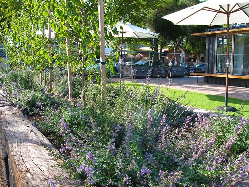 Sally Browne Landscapes had the exciting opportunity to collaborate and design a kitchen garden in the heart of Footscray based around a reconditioned shipping container café which faced North on a residential street